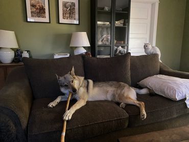 Astrid is our snarky, spicey boss babe. She is as pretty as she is clever, and has the most alluring floaty gait. Her striking correct mask and light amber eyes make looking at her for hours easy.